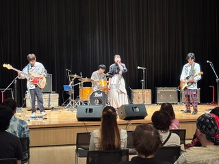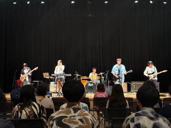 「Ivory palette」は、岩間玄高さん(Gt.&Vo./音楽科1年)、多田ひかりさん(Vo.&Key./同1年)、谷岡遙友さん(Gt./同1年)、村田陸空さん(Ba./同1年)、中島藍さん(Dr./音楽科長期履修学生)によるバンドで、オリジナルソング「青夏切符」をエネルギッシュに披露し、会場を大いに魅了しました。